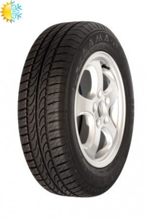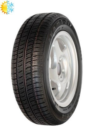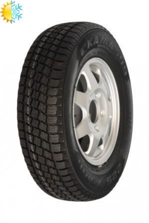 Всесезонная шина КАМА имеет низкий уровень шума и хорошую износостойкость. Рисунок протектора такой покрышки ненаправленный, ассиметричный. Он образован за счет блоков, острые кромки которых повышают сцепление со сложным дорожным покрытием выступая при этом в качестве грунтозацепов. Уверенный старт автомобилю обеспечивает центральное, червячное ребро жесткости, многочисленные кромки которого удерживают машину на безопасной траектории движения. Система поперечных и продольных желобков протектора способствует хорошему дренажу покрышки, при этом по желобкам из пятна контакта выводятся большие объемы воды, предупреждая срыв автомобиля в неконтролируемое гидропланирование при движении по мокрой трассе.